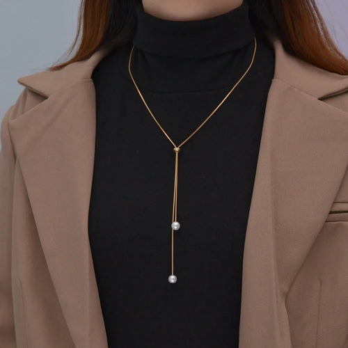 Fashion Silver Color Long Tassel Pull Pearl Pendant Necklaces for Women Simple Adjustable Clavicle Chain Choker Jewelry Gift