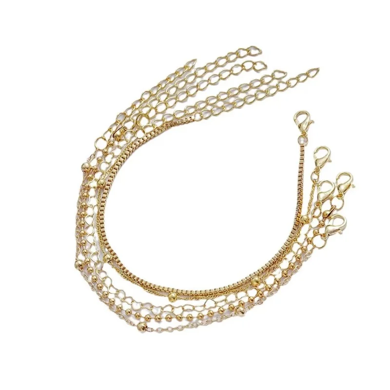 Minimalist 5-Piece Hollow Bead Bracelet With Fine Chain Set Women's Layered Necklace Combination Fashionable Daily Accessories